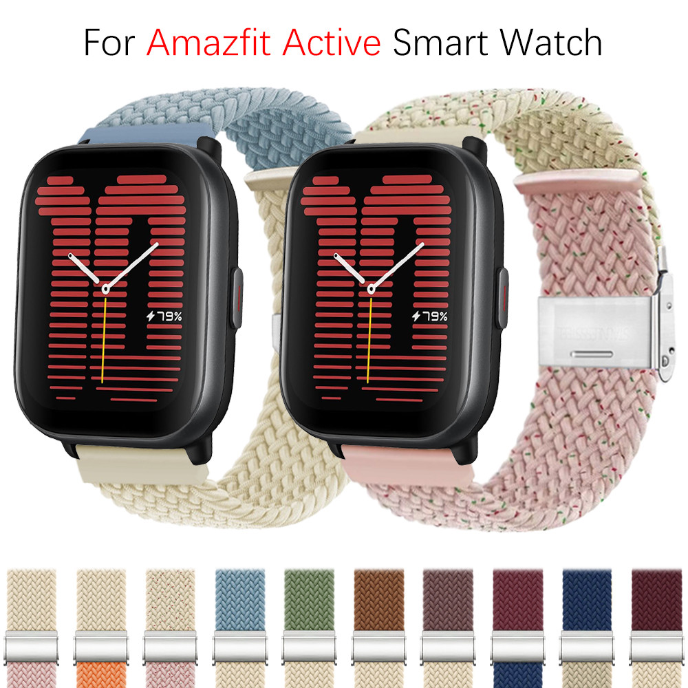 Pulseira Elástica Ajustável De Tecido De Nylon Para Amazfit Active/2 , Acessórios De Com Fivela De Smartwatch Relógio In
