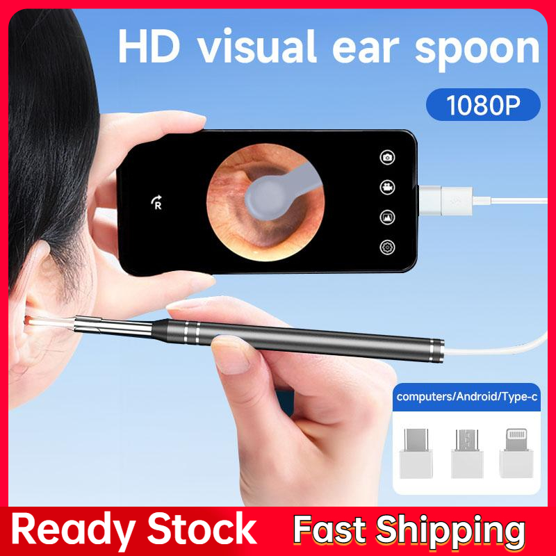 Otoscópio Hailicare 3 Em 1 USB 6 LED Para Limpeza Das Orelhas Ferramenta Visual De 3,5 Mm O Otorrinolaringologia Câmera Tipo C Android PC