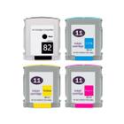 Kit Cartuchos PK compatível com Plotter Designjet 111 82 Preto e 11 Color CH565A C4836A C4837A C4838A