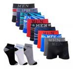 Kit 10 Cuecas Boxer Adulto + 12 Pares Meias Sport Cano Curto/ Cores Variadas