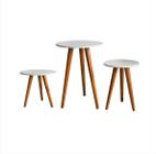 Kit 3 Mesas Redondas Retro De Canto Lateral Apoio Centro Pés Palito Madeira Tripé