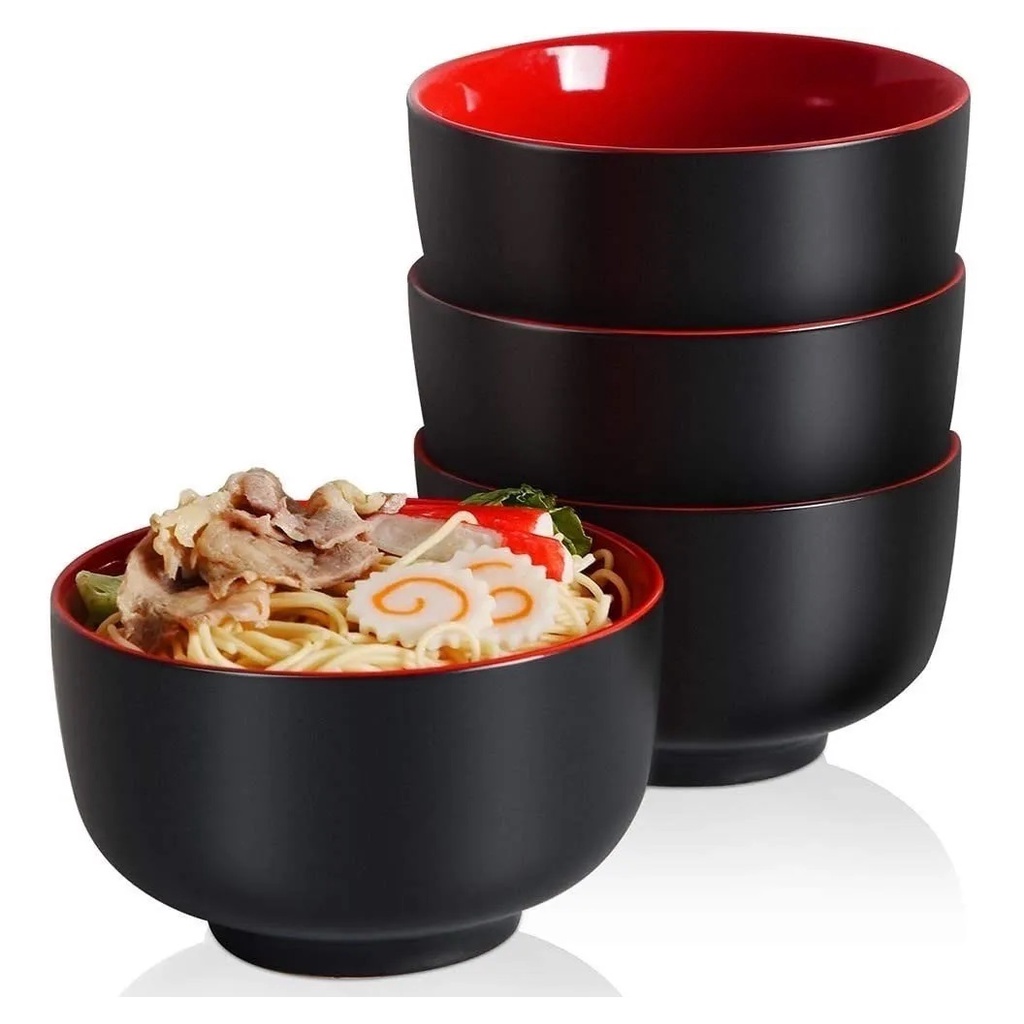 6 Tigela Bowl Cumbuca Oriental Melamina 900ml Preto Vermelho