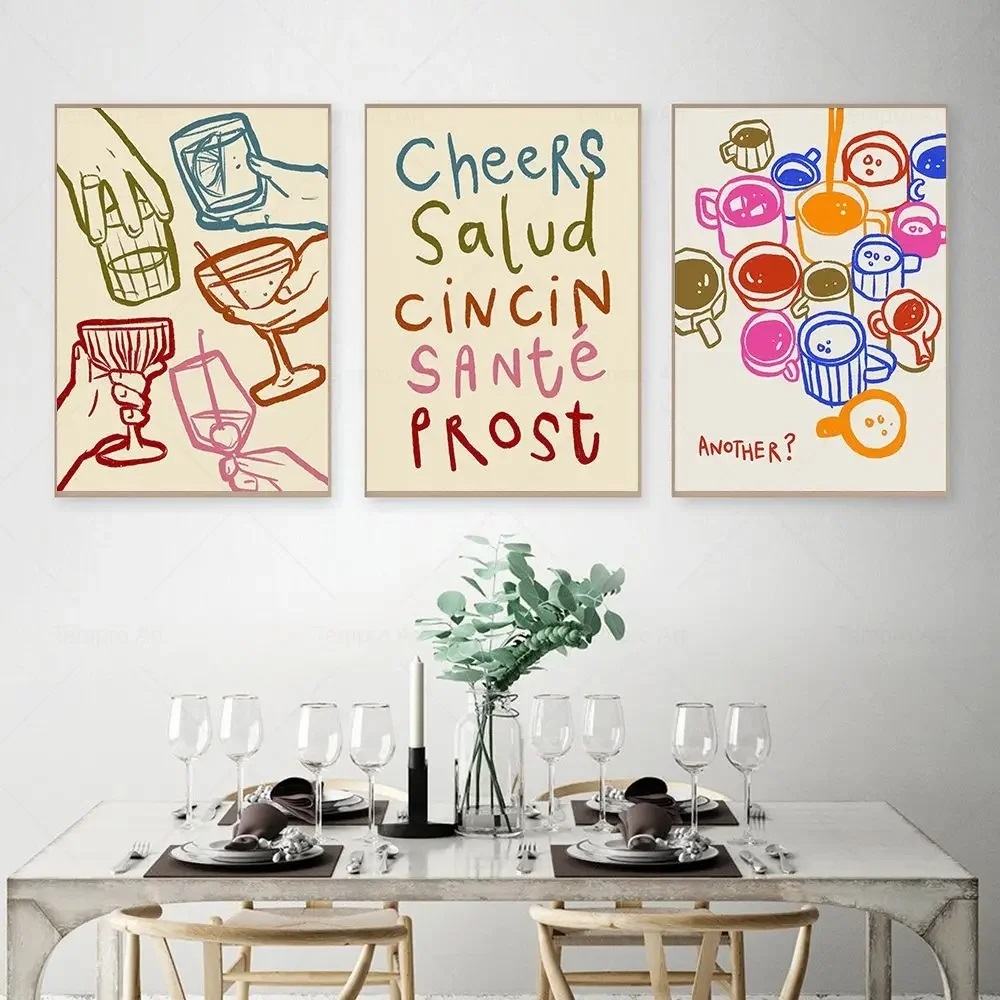 Quadro decorativo 3 peças 40x60 RetroWine Cocktail Café coquetel taça colorida cozinha decoração para casa sala quarto