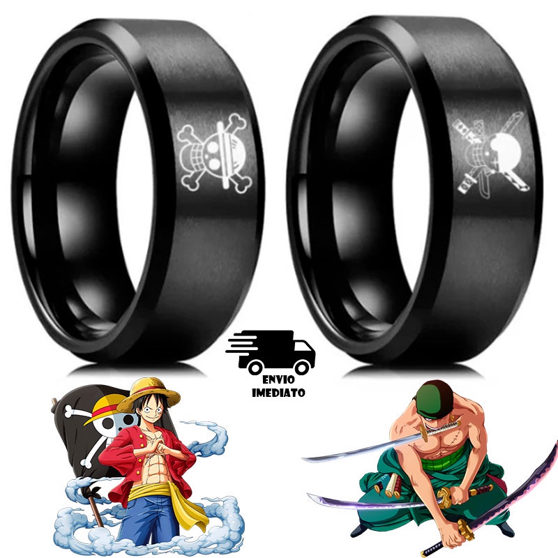 Anel anime One Piece de aço inoxidavel Luffy, Zoro, barba branca e Law