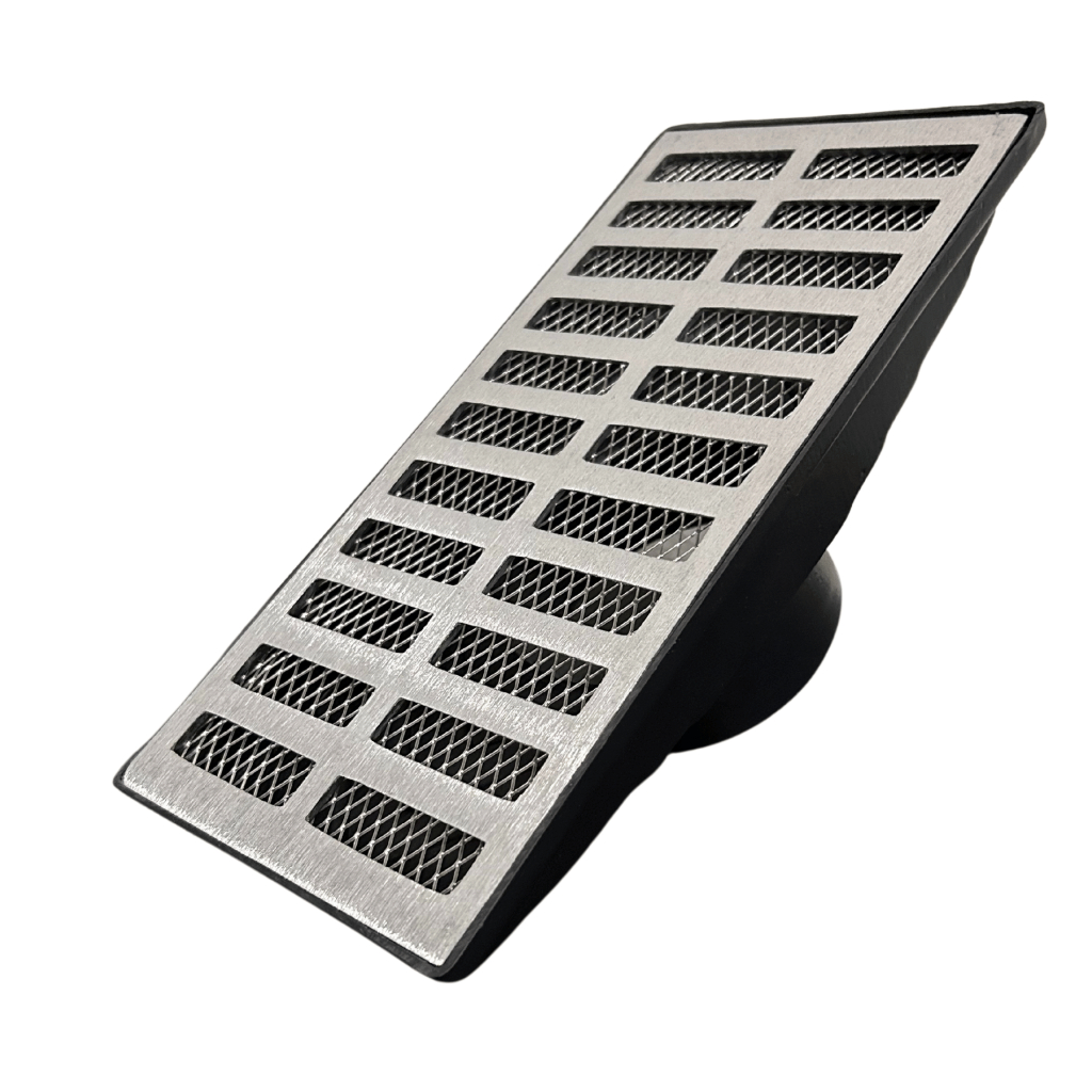 Ralo Coletor Linear 15x15 Grelha Alumínio Reta / Côncava Saída Fundo 100mm + Tela Anti-Inseto
