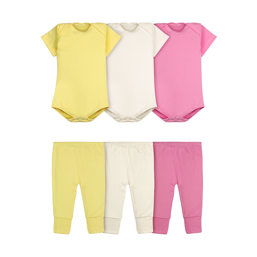 Body Bebê e Calça Mijão Kit 6 Peças Manga Curta Feminino Roupinha de Bebê