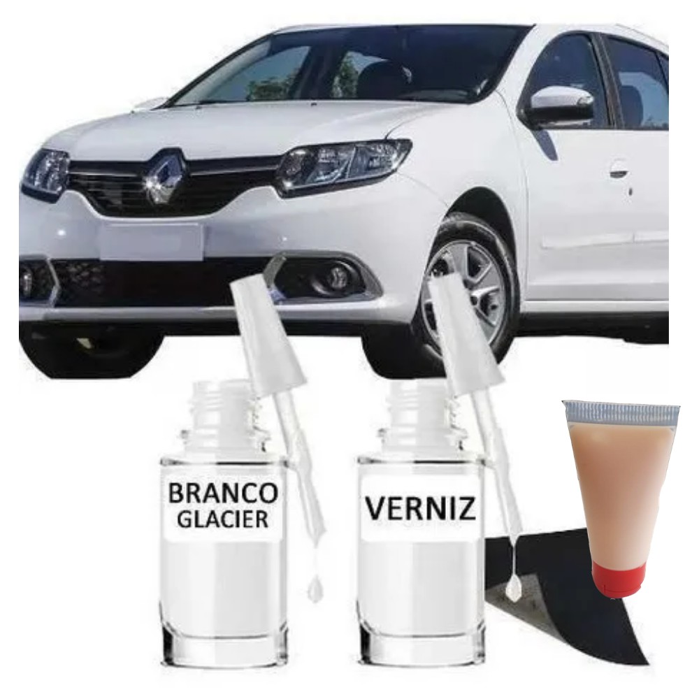 Tinta Tira Risco Automotivo Sandero Branco Glacier 10ml + Cera De Polir 15ml Para Polimento