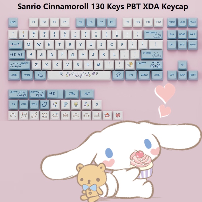 Sanrio Cinnamoroll Kuromi PBT XDA Keycaps Teclas Para Teclado Mecânico Mecanico De 104 100 98 96 87 84 68 61 Teclas Rosa Keycap
