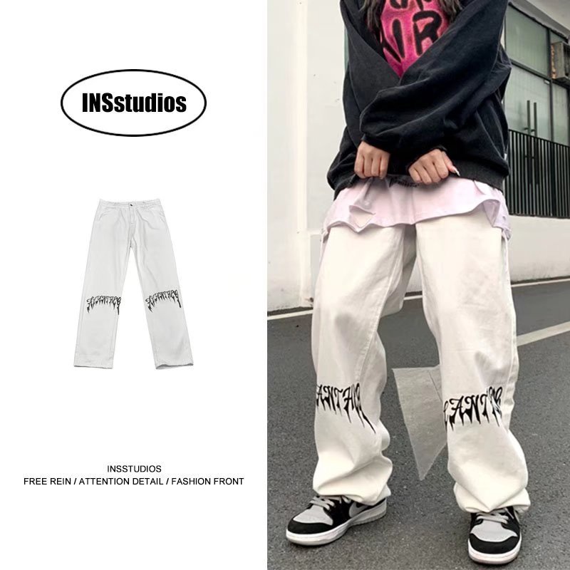 JNCO-Jeans Bordados Nicho Retro, Jeans Lavado, Calças Soltas, Emenda com Zíper, Marca Americana de Moda de Rua Alta, N9TD Solto