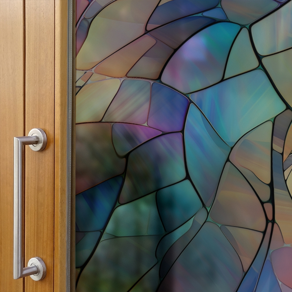 Película Adesiva Vitral Para Vidro Vários Modelos Jateados Manchas Coloridas