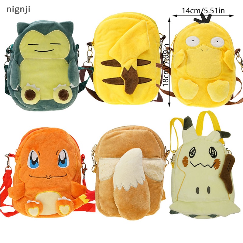 Nignji 1Pc Pokemon Pikachu Eevee Snorlax Psyduck Plush Saco De Ombro Para Crianças BR