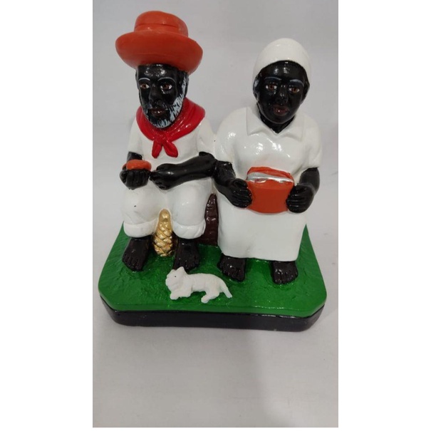Casal Preto Velho Imagem Em resina 20 Cm Estatueta Premium Umbanda/Camdomblé