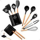 Conjunto Utensílios Kit 12 peças Talher de Cozinha Silicone jogo talheres Cabo Bambu madeira