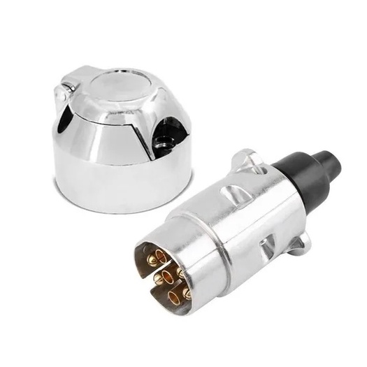 Kit Tomada Cromada Femea+Macho 6 Polos Cromada Para Engate Reboque Carretinha