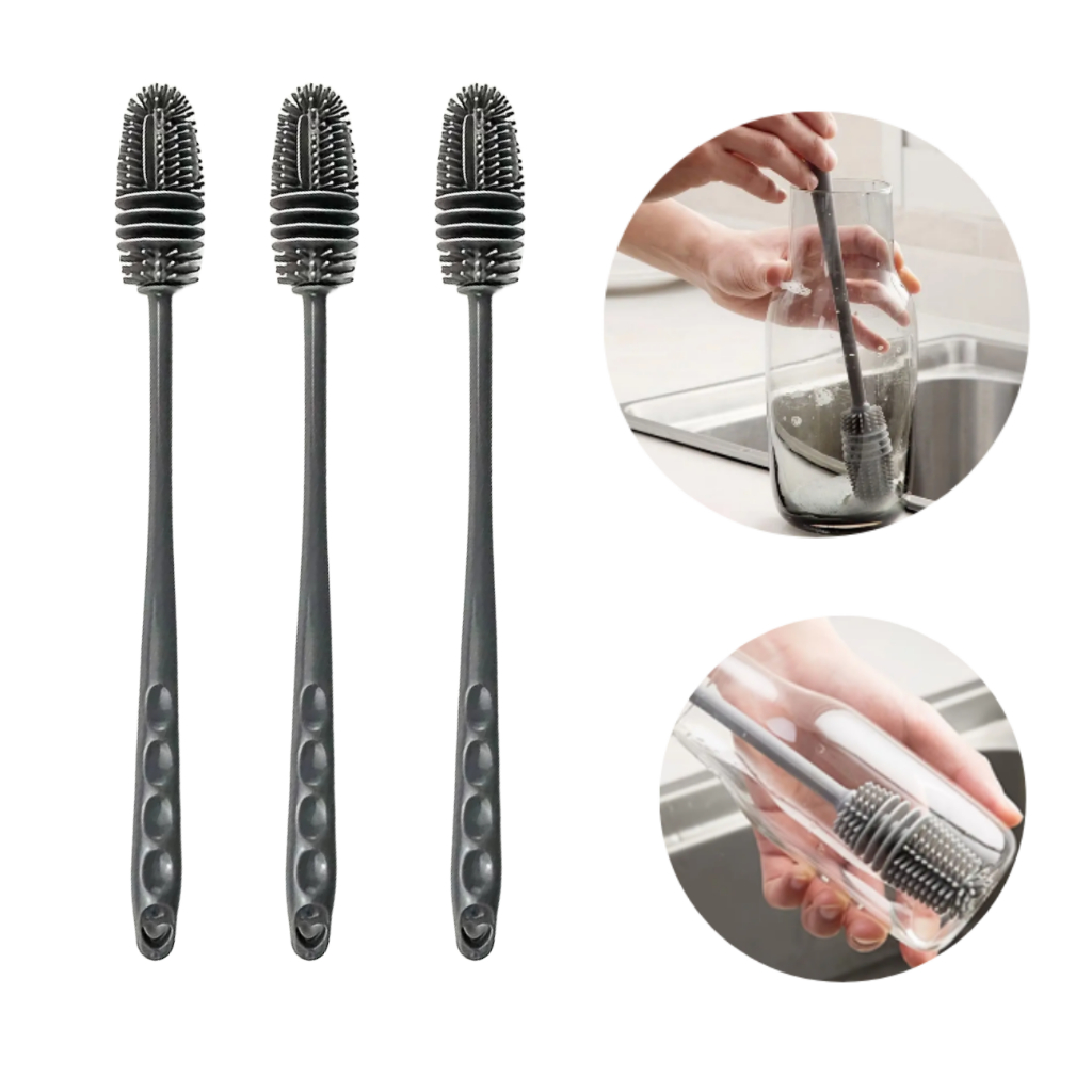 Kit C/ 3 Escova De Lavar Garrafa Mamadeira Copos Multiuso De Silicone Escovas