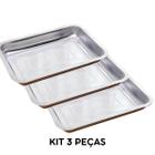 Kit 3 Assadeiras Bandeja Retangular Aço Inox 39 x 29 cm