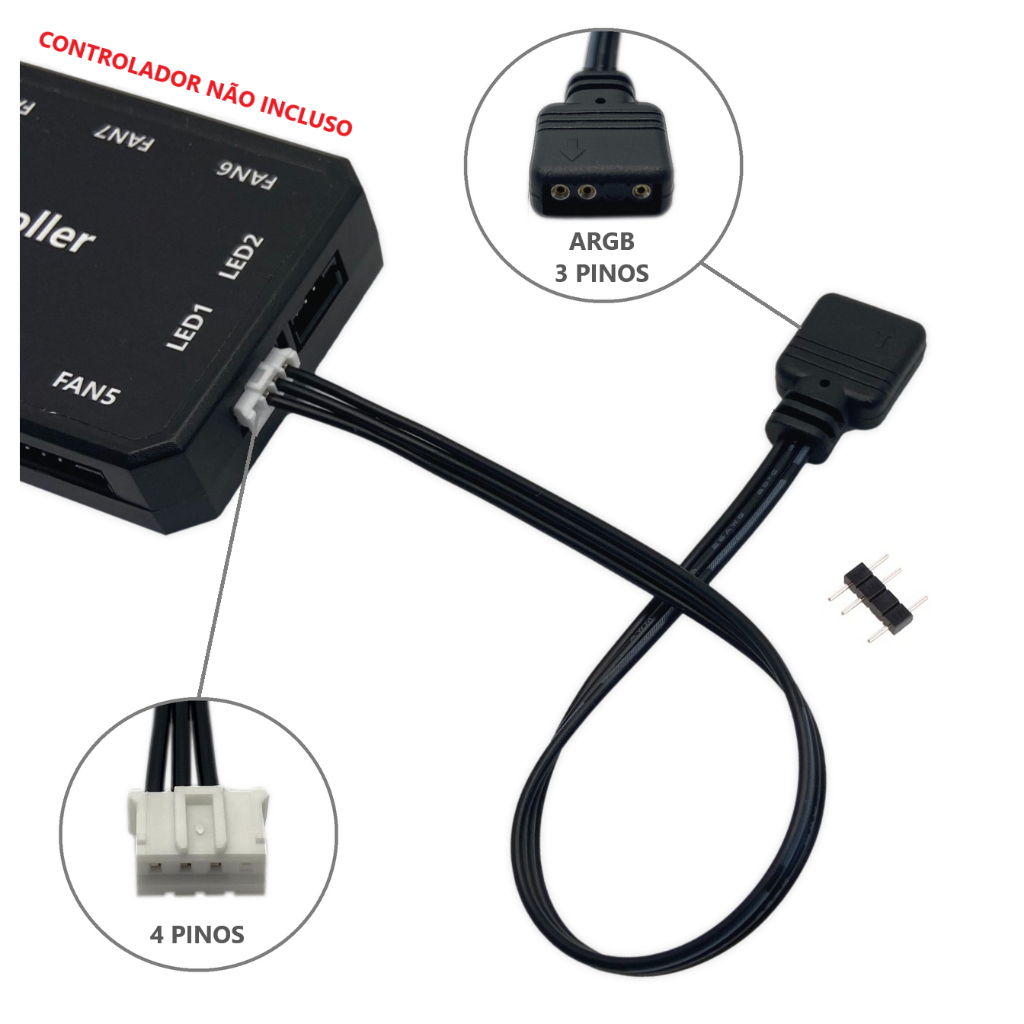 Adaptador 4 Pinos Led1 Led2 Para Controladoras de Fan e Dissipadores Led Argb 3 Pinos 5v 4pin Para 3pin