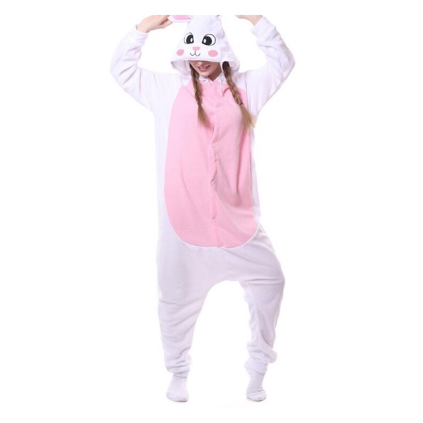 Pijama Kigurumi Coelho Pink Com Branco Adulto Macacão Cosplay Unissex
