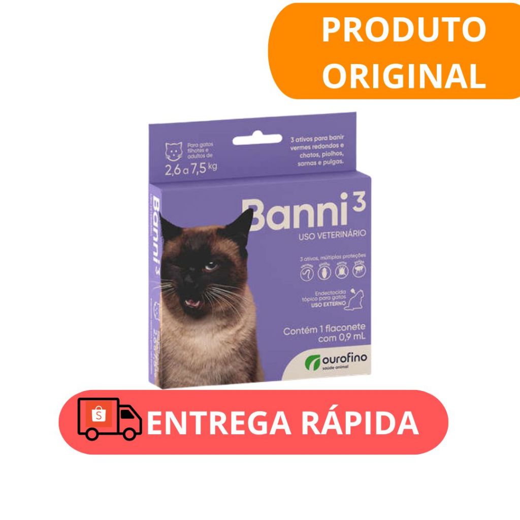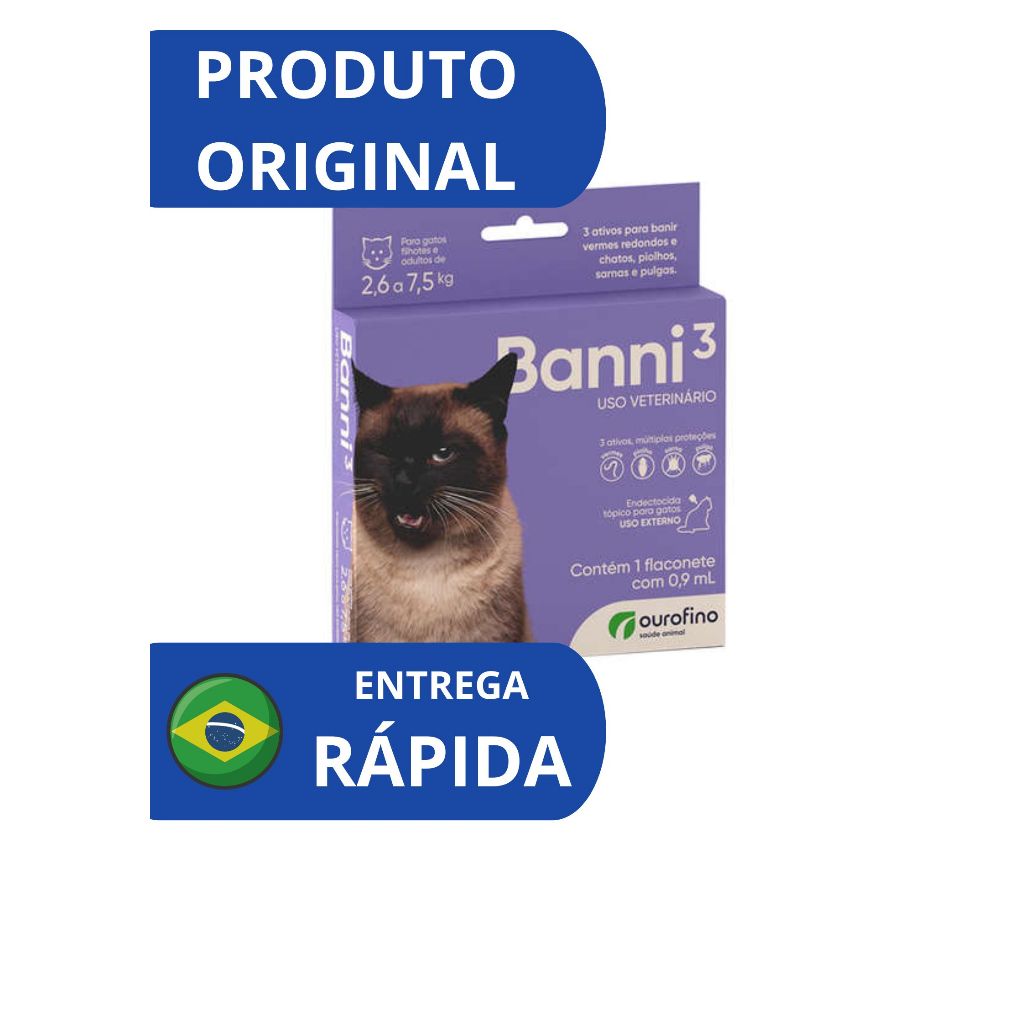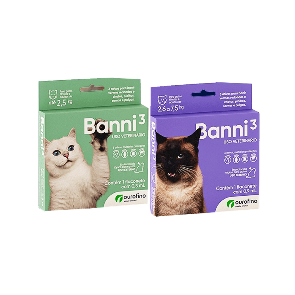 Banni 3 Gatos - 0,3ml e 0,9ml - Vermes Pulgas Sarna Piolho - Ourofino Pet