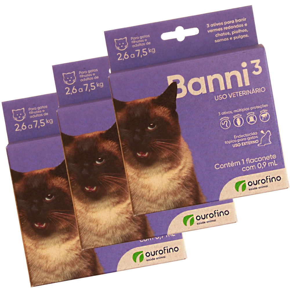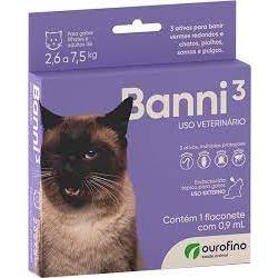 3 x Banni 3 Gatos até 7,5kg 0,90ml Vermes Pulgas Sarna Piolho - Ourofino Pet