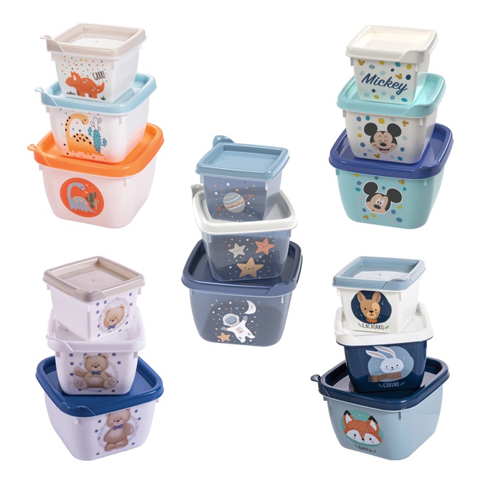 Conjunto de Potes de Plástico Infantil Bebê Conect 3 Unidades Quadrados Meninos - Plasútil