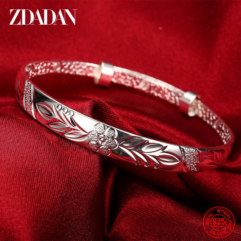 ZDADAN 925 Prata Esterlina O Padrão Bracelete De Punho Esculpido Bangle For Women Fashion Jewelry