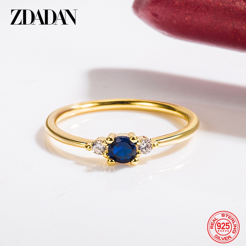 ZDADAN 925 Prata 14K Anel Zircônio Azul Ouro Para Jóias De Casamento Feminina