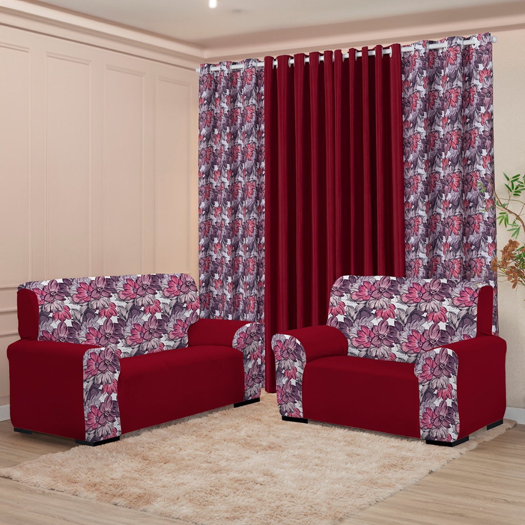 Kit Sala Cortina 3 Metros + Capa de sofá 2 e 3 lugares Coladinha Mista Floral Estampada (Protetora Decoração Sala Ambiente)