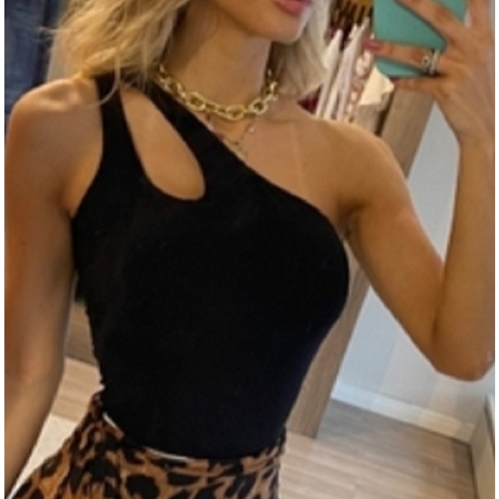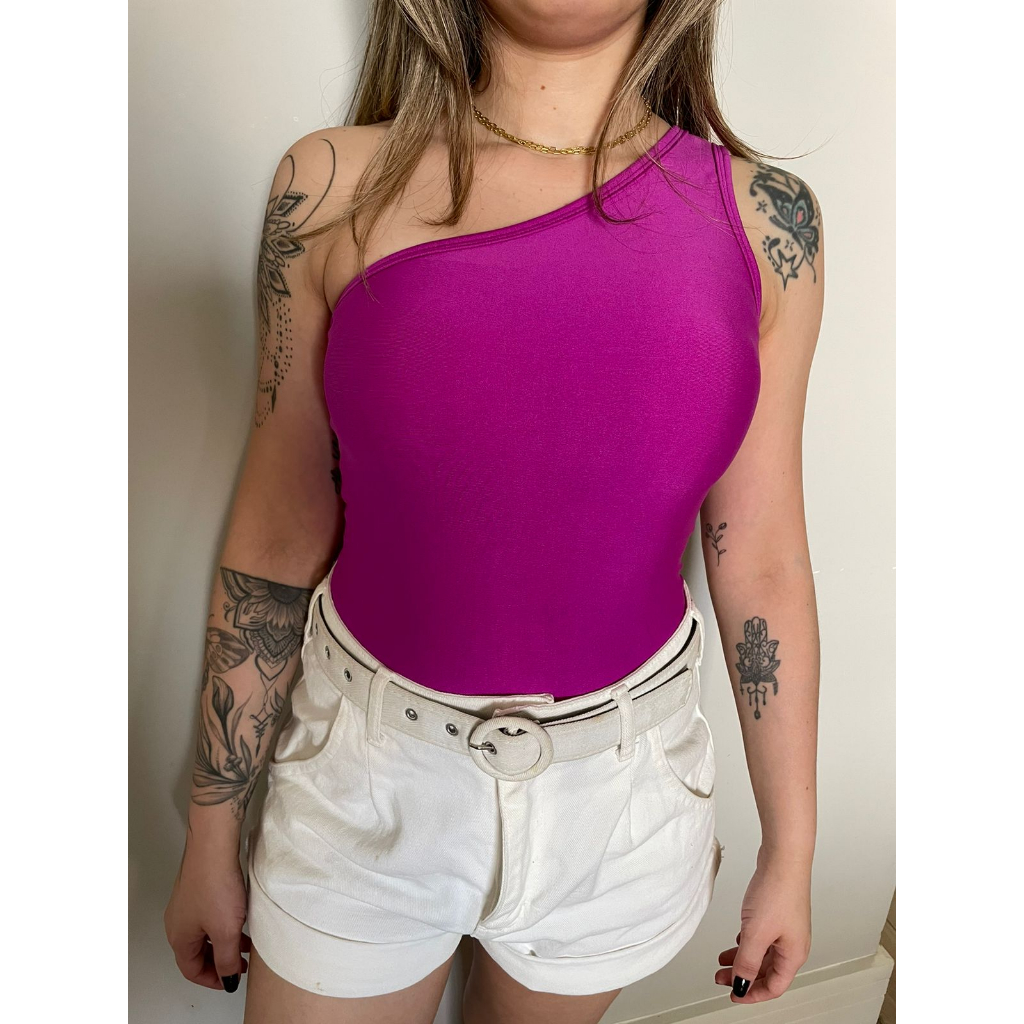 Body Feminino Manga Única Mula Manca Um Ombro Só Blogueira