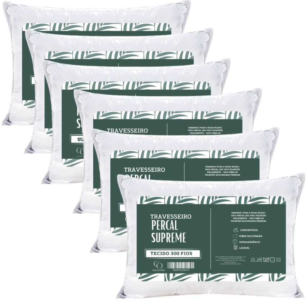 Kit 6 Travesseiro Antialérgico Supreme 70x50cm Suporte Firme Hotel Fibra Siliconada Importada