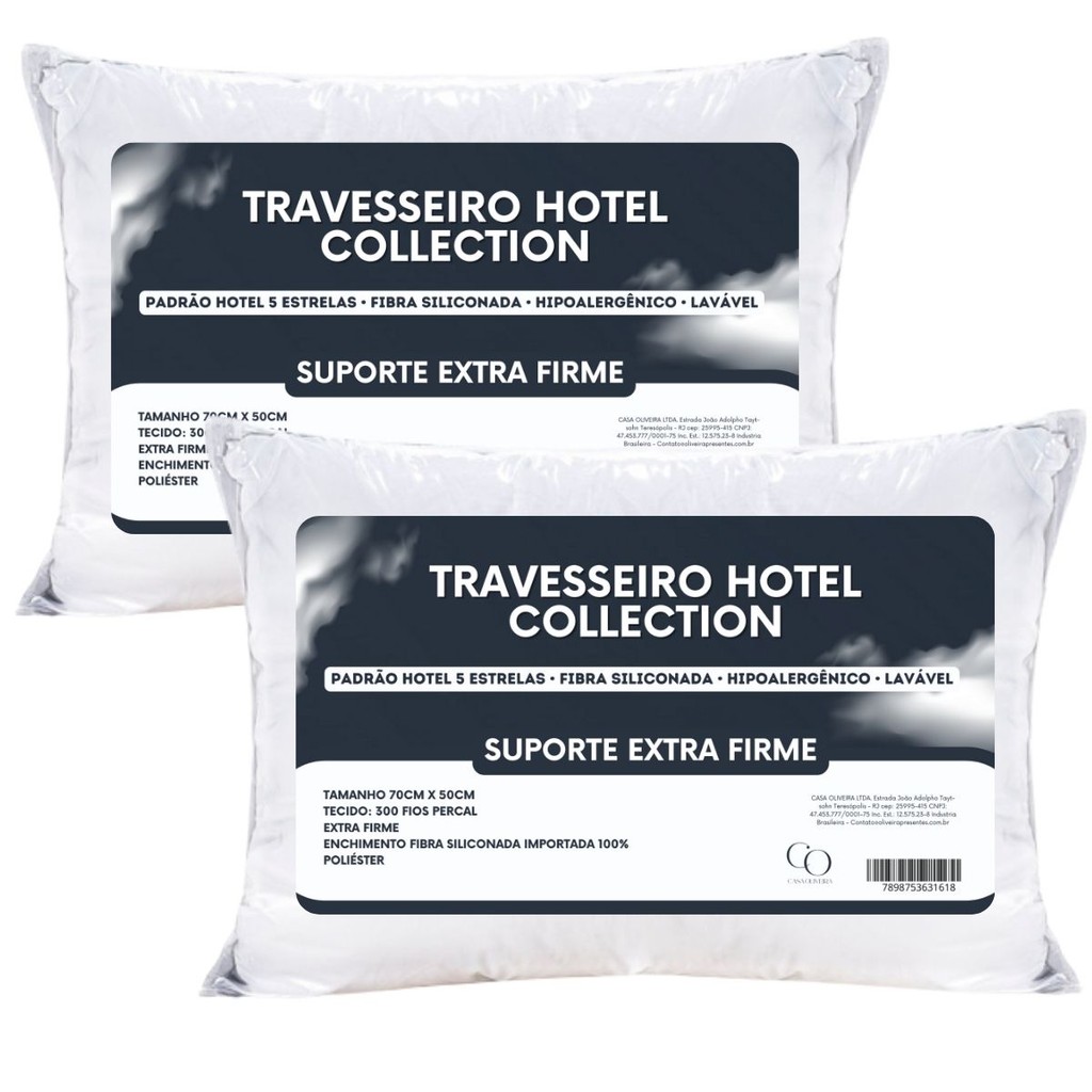 Kit 2 Travesseiro Extra Firme Hotel Collection Padrão Hotel Antialérgico Fibra Siliconada Premium