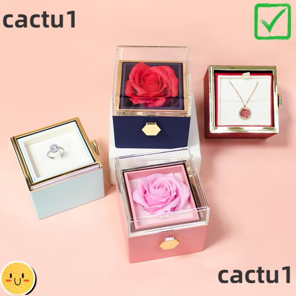 CACTU Caixa De Jóias Rotativa , Flor De Sabão Com Rosas Em Saco , Criativa De Anel Acrílico Rosa Eterna Transparente Dia Dos Namorados