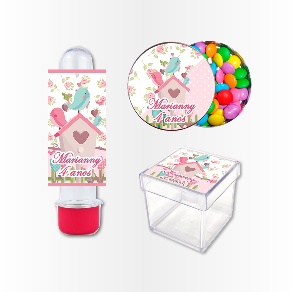 Kit Festa 60 Rótulos Adesivos e apliques Aplique Tag Topper Kit Festa Infantil 3d Tubete Personalizado Lembrancinha Caixinha Latinha tubetes Jardim Encantado