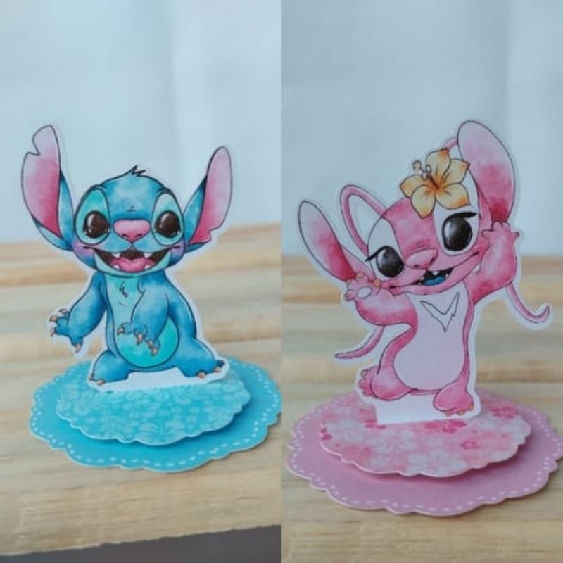 Kit Aplique em pé 3D Personalizada para lembrancinha de Festa - Stitch e Angel