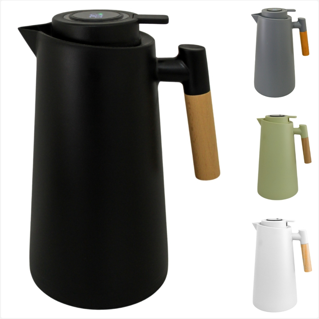 Garrafa Térmica 1 Litro Com Termômetro Digital Led e Cabo Madeira Design Moderno Para Chás e Café