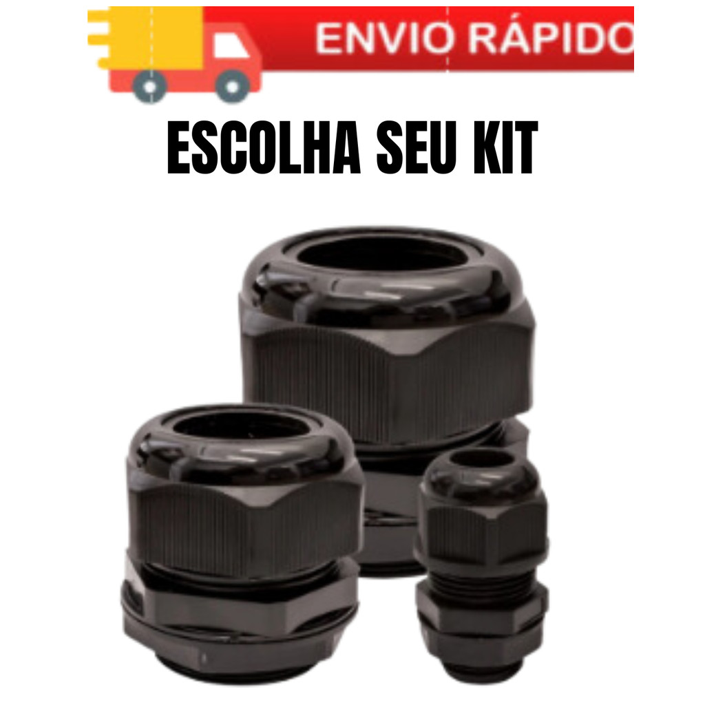 Kit 5 Prensa Cabo PG9 Nylon com Vedação IP68 Fio Preto