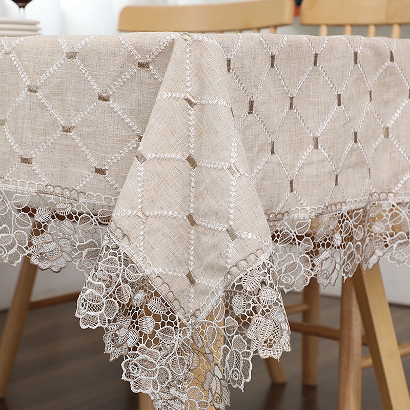 Toalha De Mesa De Algodão Com Estampa De Flor De Linho Com Renda / Toalha De Mesa De Jantar