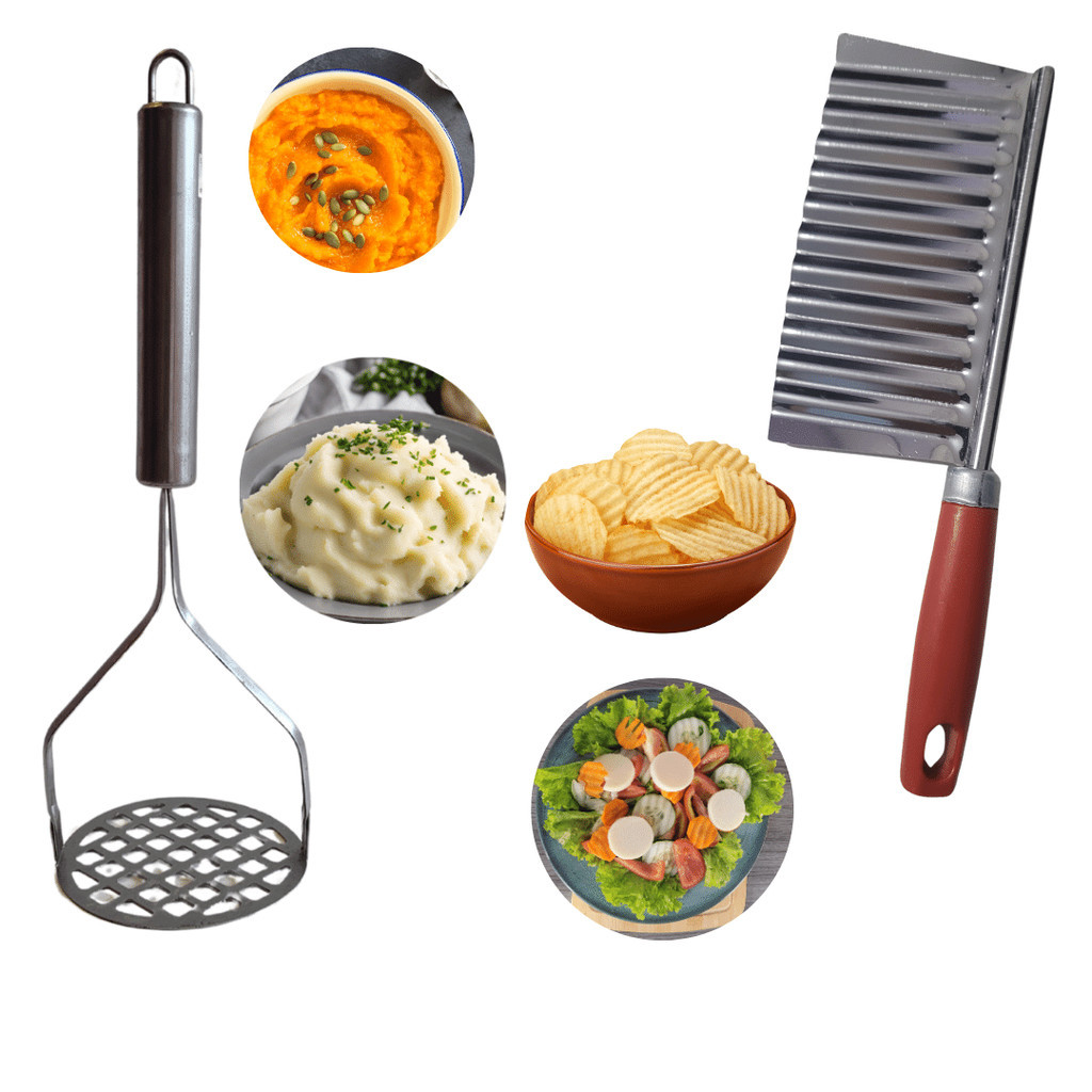 Kit Amassador de Batata Purê Cortador Ondulado Chips Legumes Inox