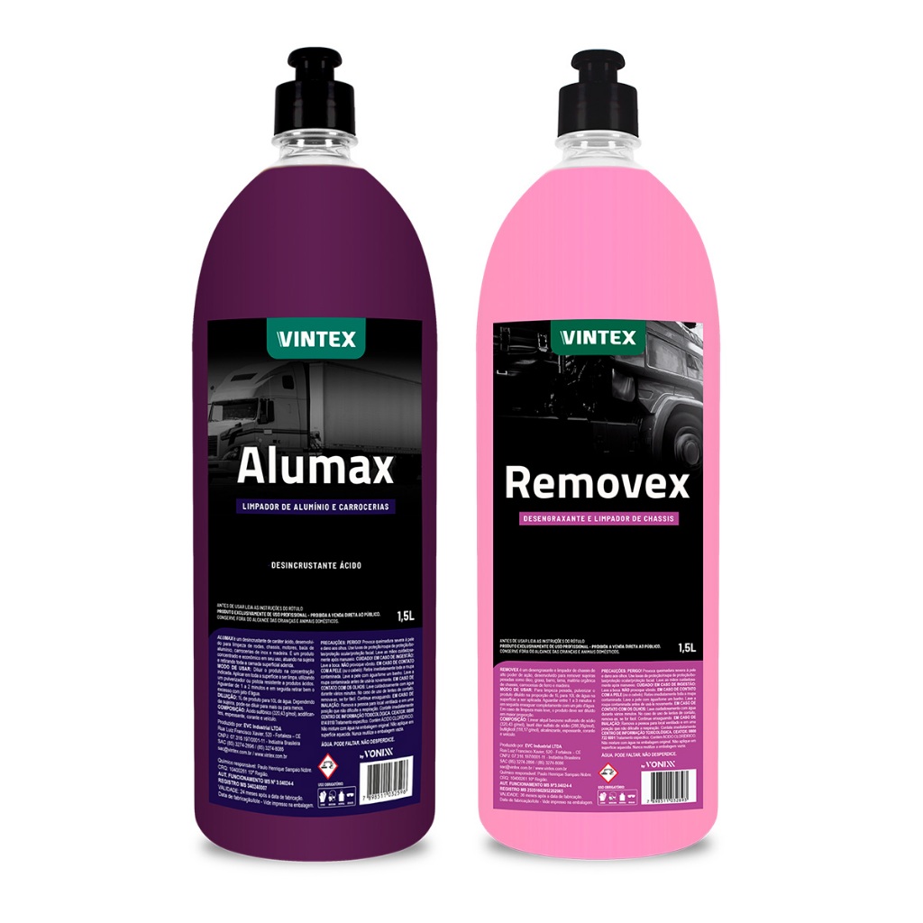 Alumax 1,5l + Removex 1,5l Vintex Vonixx Desengraxante e Desincrustante Limpa Carrocerias Alumínio