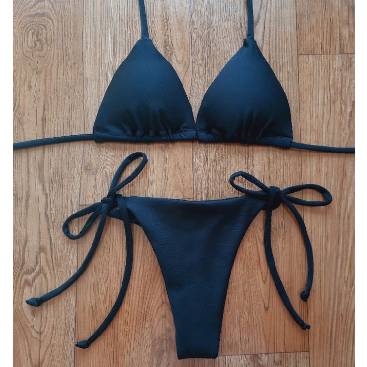 Biquini Conjunto Top Cortininha Calcinha Asa Delta Dois Fios Fio Dental Bojo Removivel Poliamida