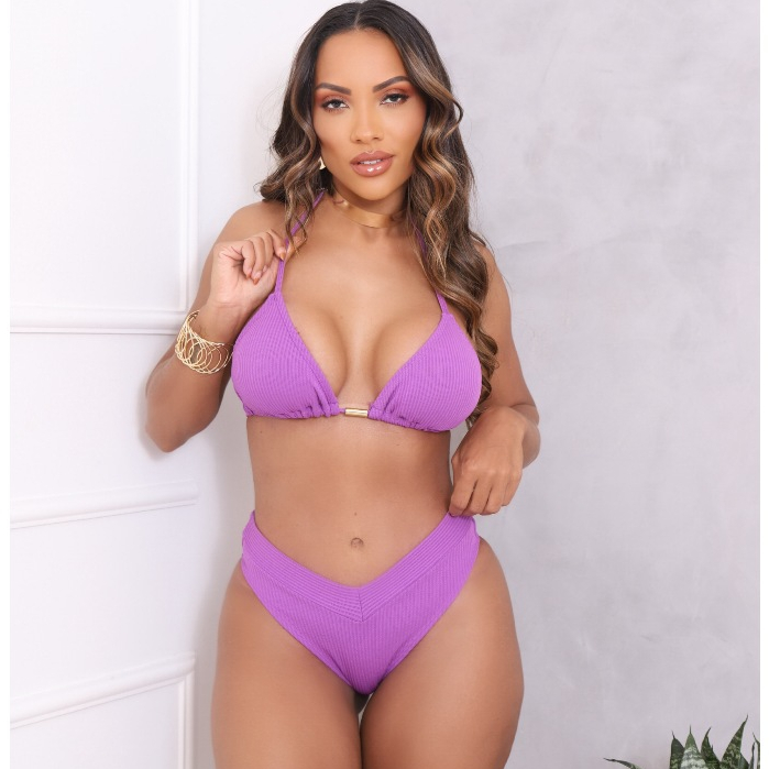 Conjunto Biquini Cortininha Canelado Calcinha Asa Delta Fio Duplo Com bojo