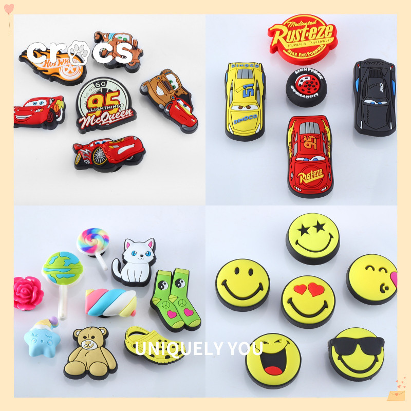 croc shoe buckle Jibbitz Carro Dos Desenhos Animados McQueen Carros Sapato Fivela Charme smiley face Buraco Acessórios