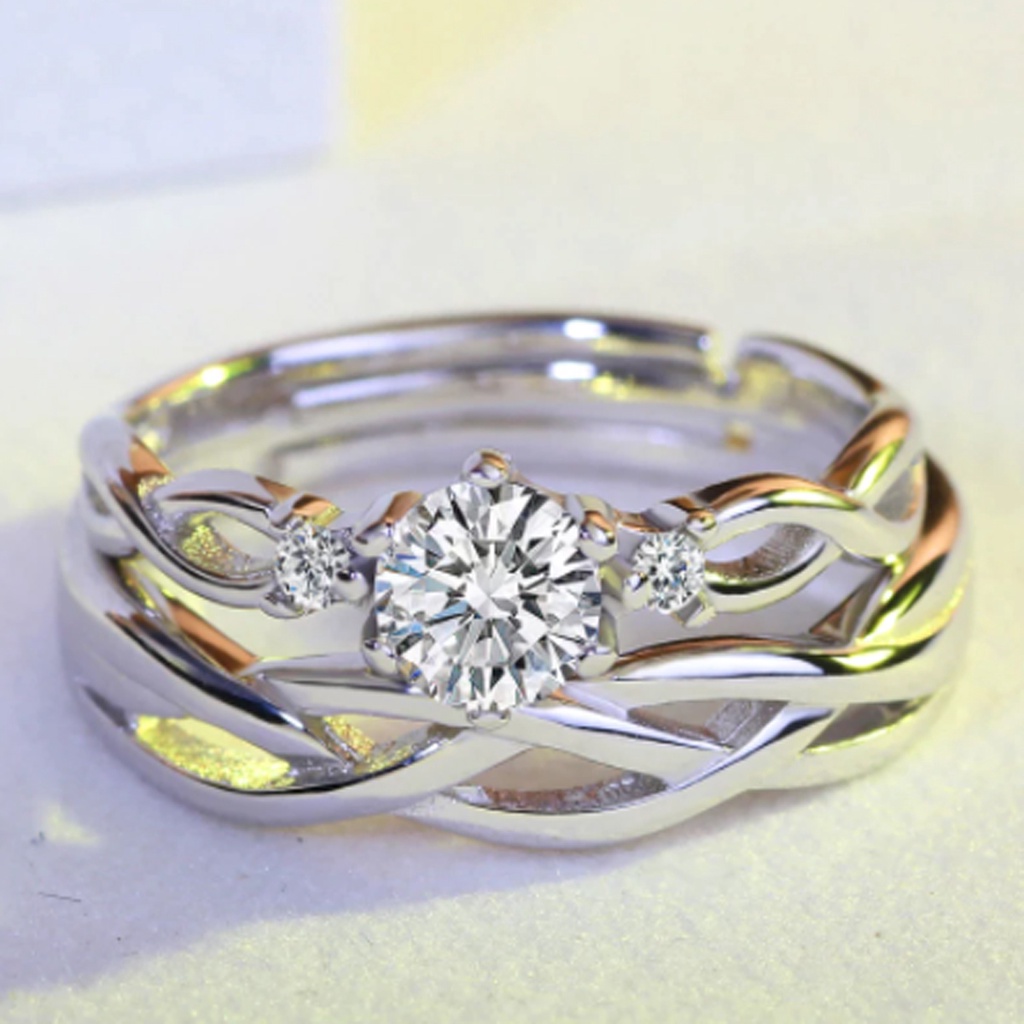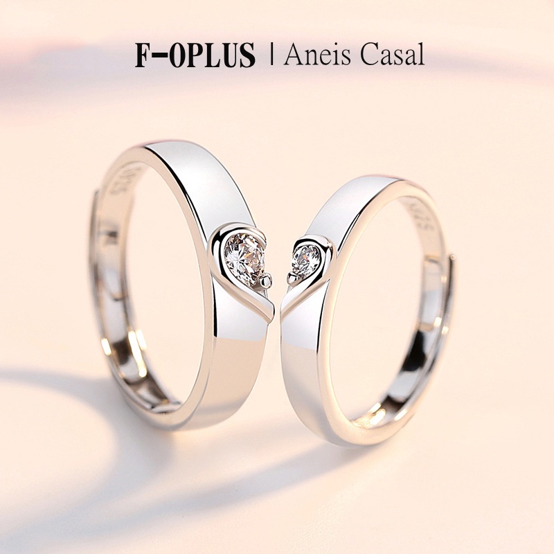 F-OPLUS | Aliança de Namoro Coração com Zircônia Ajustável Par de Aliança Anel Compromisso Namoro CRC029