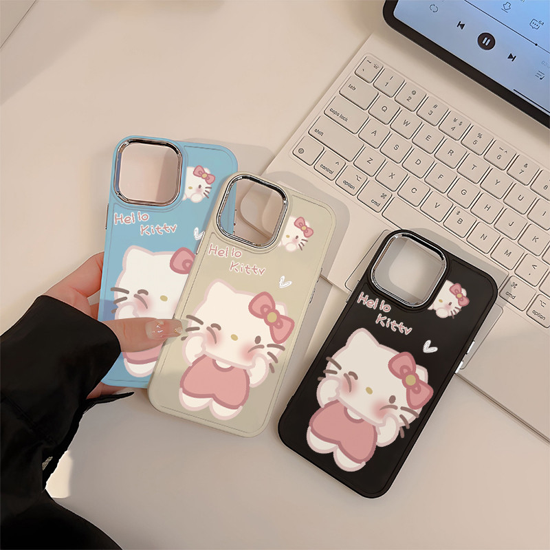Capinha capa de telemóvel com textura galvanizada de Hello Kitty para IPhone 11 12 13 14 15 pro max x xs xr xs max