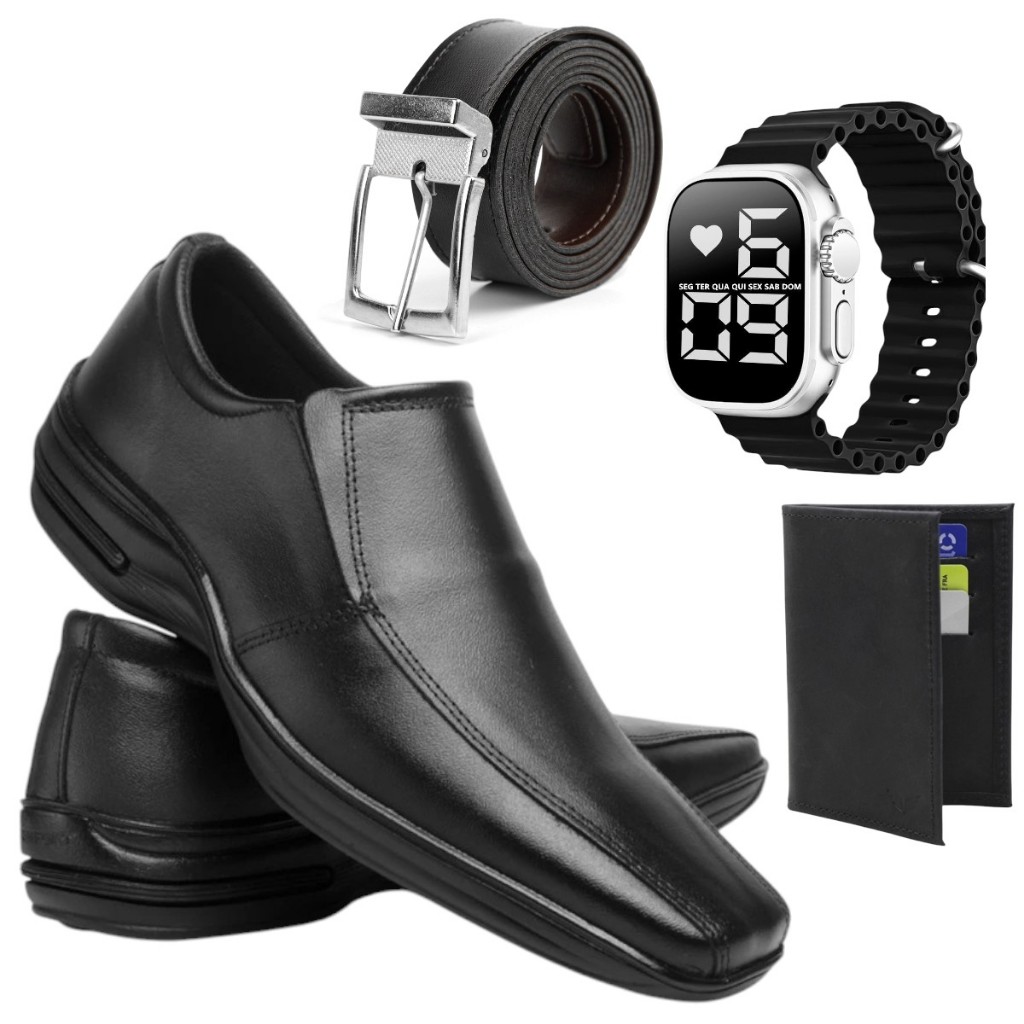 Kit Sapato Social Masculino Italiano Elastico Fosco Super Leve Oferta