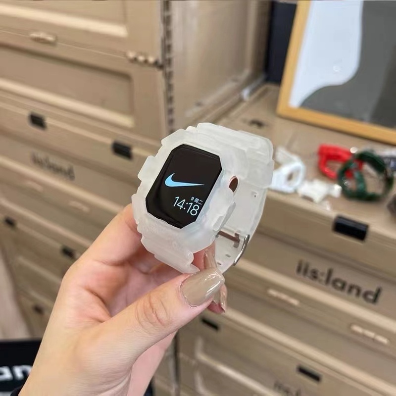 Pulseira De silicone Transparente À Prova D'água + case Para Apple watch 7/6/se/5/4/3/2/1/iwatch 40mm/44mm/42mm/41mm/45mm