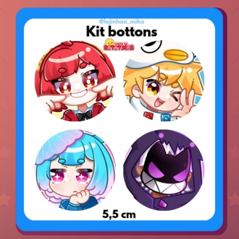 Kit com 4 Bottons De 5,5 CM Turma Da batatinha Indie série Desenho Kawaii Youtube