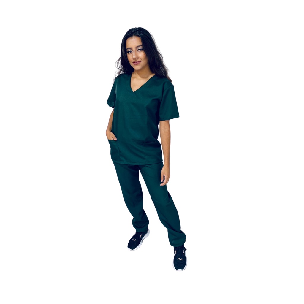 Pijama Cirúrgico Scrub Feminino Oxford Rose Carcelin, Tecido não Amassa (não precisa passar) e seca rápido. Ideal para médicos, enfermeiros. (VERDE MUSGO) BORDADO GRÁTIS