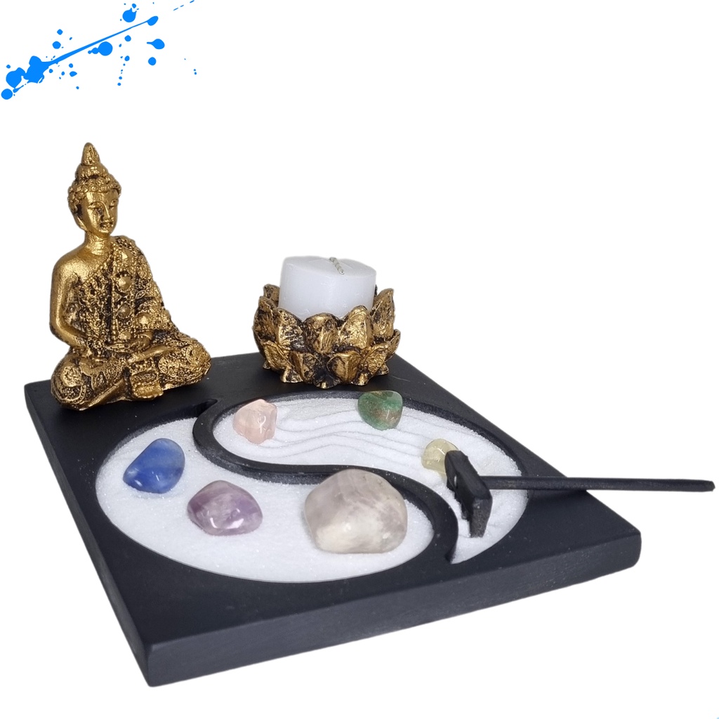 Enfeite Jardim Zen Japonês Yin Yang Buda Hindu Ouro Decoração
