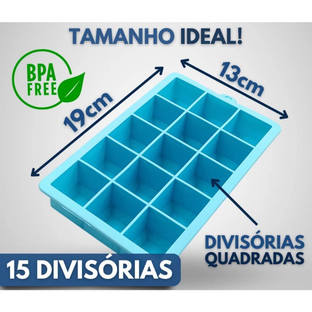 Forma De Gelo De Silicone 15 Cubos Mimo Style Com Tampa Livre BPA